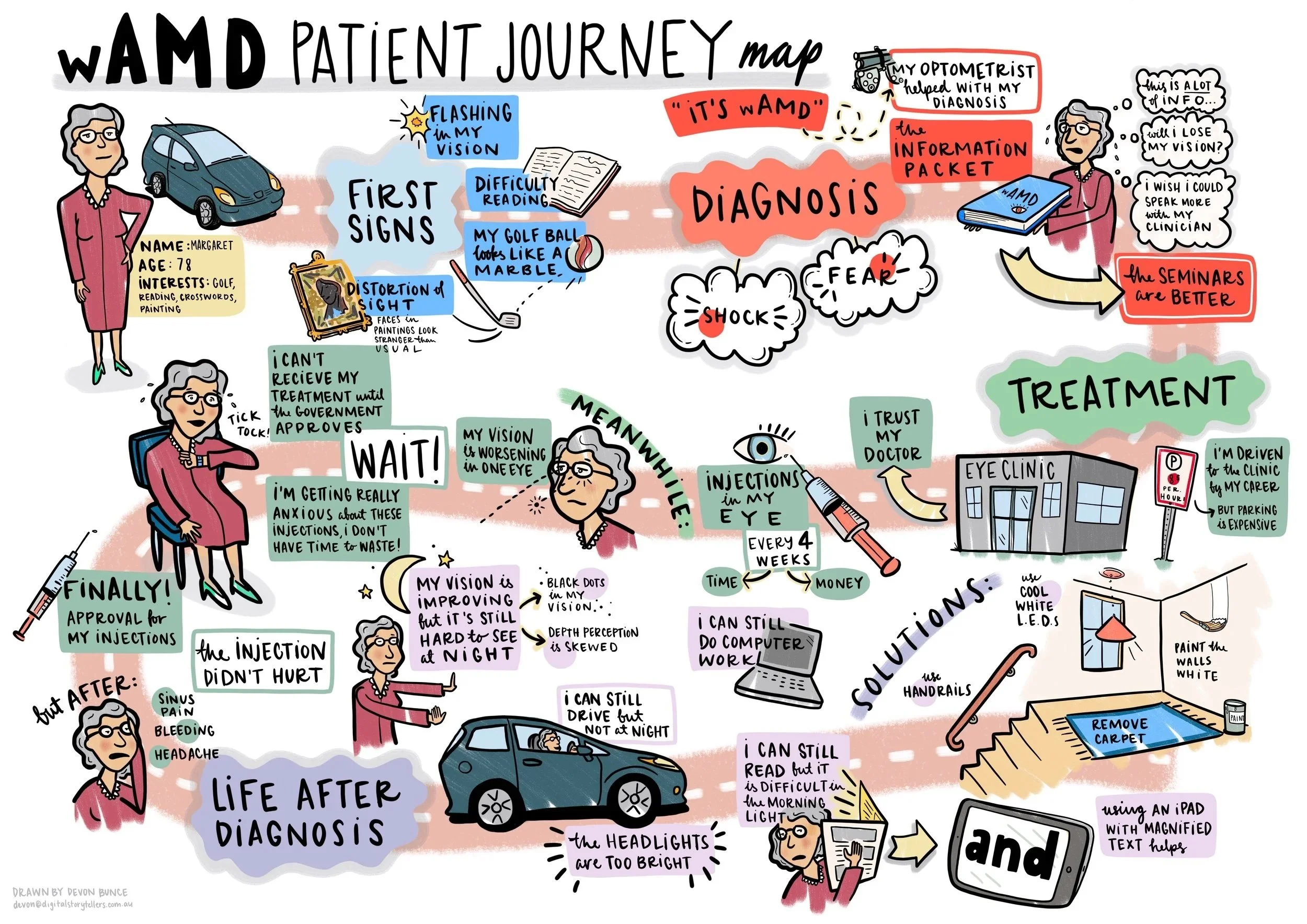 Need to synthesize a complex process or system in a more accessible and engaging way? Have us create a graphic to demonstrate a flow, user journey, or patient journey, for your clients or community.